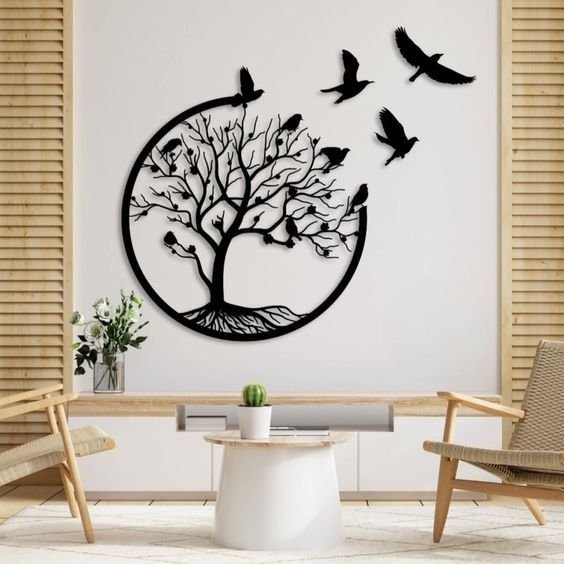 Finished in a premium matte black, this metal décor piece acts as a window into a serene forest, casting soft architectural shadows that add depth to your feature wall.