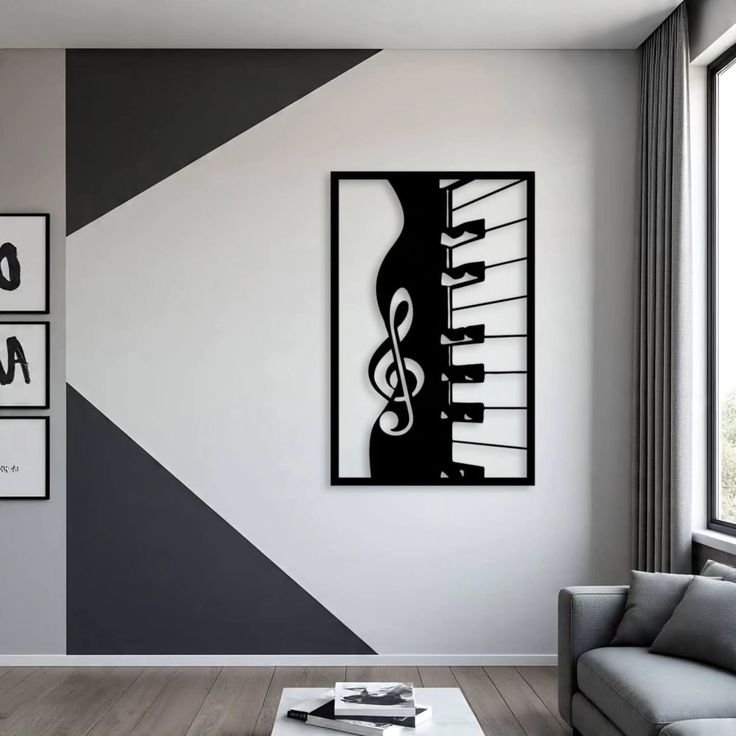 Expertly crafted using high-precision laser cutting, the piece features clean lines and a high-contrast aesthetic that mimics the “black and white” of a grand piano. The open-frame design allows your wall color to become part of the art, while the matte black metal creates a bold, sophisticated focal point in any room.